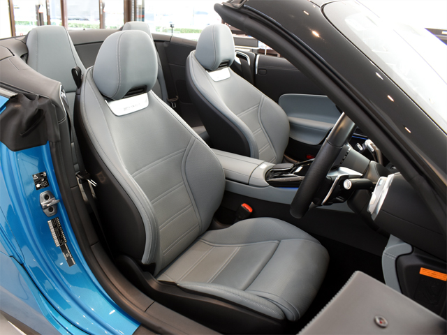 ハイパーブルーのエクステリアにセージグレーのインテリアのコンビネーションがお洒落なSL43。新車価格を考慮いたしますと大変お買い得感のある1台です。